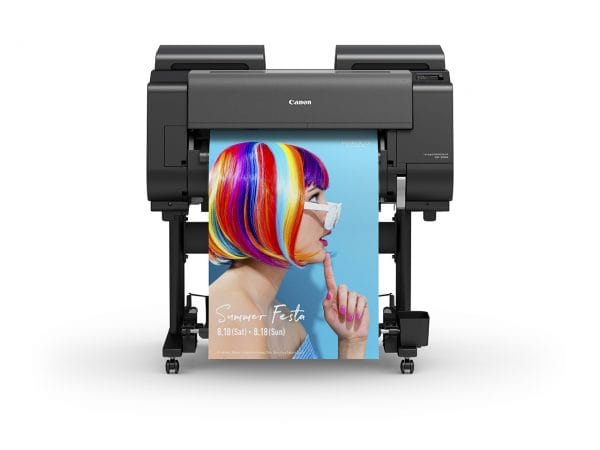Reproduce images with added vibrancy with fluorescent pink; ensuring posters really catch the eye, with the new Canon imagePROGRAF GP-2000 44-inch Large Format Printer.Canon LUCIA PRO inks for the GP-2000 deliver a super wide colour gamut enabling production for applications that demand faithful colour reproduction such as corporate colours, graphics with fluorescent colours, and colour proofs with a a wide colour gamut. The Canon imagePROGRAF GP-2000 is the first Pantone-calibrated licensed printer for a wide range applications, including Pastels and Neons Guide Coated and 99% coverage of the Pantone Formula Guide Solid Coated used in a wide range of applications.The Canon imagePROGRAF GP-2000 features “Radiant Infusion” technology, which layers newly developed fluorescent pink ink with other inks on the paper surface during printing, enabling bright and soft colour reproduction. The 11 pigment ink colours; Matte Black, Photo Black, Cyan, Magenta, Yellow, Grey, Red, Orange, Green, Violet and Fluorescent Pink, are available in 160ml, 330ml, and 700ml hot swap ink tanks for uninterrupted printing.The Canon imagePROGRAF GP-2000 Large Format Printer high productivity features include smart roll paper, multifunction roll capabilities, hot swap ink tanks, borderless printing, and a number of other built-in technologies. The smart roll paper is an automatic, accurate media handling feature that takes the guess work out of setting up the printer. Just insert the media roll on the feeder, and the GP-2000 loads it automatically, sensing the type and size of the paper and eliminating the chance of a stray fingerprint spoiling the job. The smart paper roll automatically performs paper supply and feeding, detects paper type and width, estimates remaining amount of paper, and adjusts the condition to enable printing simply by placing roll paper in the feed section of the printer. The automation of these high-workload paper supply tasks reduces the workload on the operator, eliminates the need to manually insert the paper into the paper feed slot, and eliminates the need to touch the media surface during paper supply, which prevents adherence of fingerprints and dirt. The imagePROGRAF GP-2000 media handling features front-loading and front output for roll and cut sheet media and can accept a width of 152.4 – 1118mm and thickness of 0.07 – 0.8mm. The maximum printable length for roll paper is 18 meters, and 2133.6mm for cut sheet. The minimum printable length for roll paper is 101.6 mm and for cut sheet is 203.2mm, and the maximum media roll diameter is 170mm. Manual feed is possible, using a media locking lever.The imagePROGRAF GP-2000 Large Format Printer supports borderless printing technology, increasing productivity as there is no need for offline trimming. The GP-4000 delivers improved borderless printing in various formats, easy to do, and without the need for time-consuming finishing. An advanced media sensor detects the edges and automatically adjusts the margins for pinpoint accuracy. Choose ‘free’ size or three-sided borderless.The Canon imagePROGRAF GP-2000 Large Format Printer has a number of built-in technologies to enable effortless printing of high quality images which ultimately conserves ink and media. The robust chassis of the imagePROGRAF GP-2000 reduces vibrations, which improves the accuracy of the ink droplet placement. The Auto Skew Correction function guarantees that all types of paper, including thick paper, can be printed without misalignment and enables unattended printing by automatically adjusting for any skew in orientation and feeds the paper/media correctly. The vacuum feeding system keeps paper flat regardless of paper weight and type during printing, which helps ensure accurate placement of ink droplets on paper. The GP-4000 features a standby mode, which will periodically agitate the ink tanks and warms up the print head, keeping ink from drying up inside and clogging nozzles. In the event that a nozzle gets clogged, Canon has a non-firing nozzle detection and compensation system, which turns on back –up nozzles to prevent drop-outs during a print, ensuring highest quality prints every time.The Canon imagePROGRAF GP-2000 ensures the correct balance and mixture of inks, with precise ink droplet placement, to achieve optimum quality prints at a professional grade by incorporating a new Canon’s L-COA (Large Format Common Architecture) Image Processing System. The L-COA engine works with a 3 GB internal memory core and 500GB encrypted hard drive to process large volumes of data at high speeds.The Canon imagePROGRAF GP-2000 Large Format Printer features a vast range of connectivity options, offering versatility and flexibility to integrate into existing professional workflows. The Canon imagePROGRAF GP-2000 features Wi-Fi functionality, offering the freedom to print from a variety of devices and popular applications and for easy connection and quick setup for wireless networks, as well as a built-in high speed USB2.0 port, and Ethernet connections. The GP-4000 features fast and easy printing directly of PDF and JPEG file formats from a USB memory stick.The optional Multifunction Roll System for the Canon imagePROGRAF PG-2000 is ideal for high-volume continuous printing. The Multifunction Roll System provides a second roll feed and/or rewinding printouts on a roll(media take-up unit) . For dual roll support, the optional Lower Roll Paper is available, with front-loading and front output, which supports continuous paper feeding and auto-switching, or automatic take-up of printer output. The optional Media Take-up roll unit includes a dual direction roll take up unit allowing the print surface to be wound inside or outside of the roll. Two rolls of the same media type can be used, or two different sizes and types of roll paper can be used with switching during printing. The lower unit can be used as a take-up unit for the output form the upper unit.The Canon 